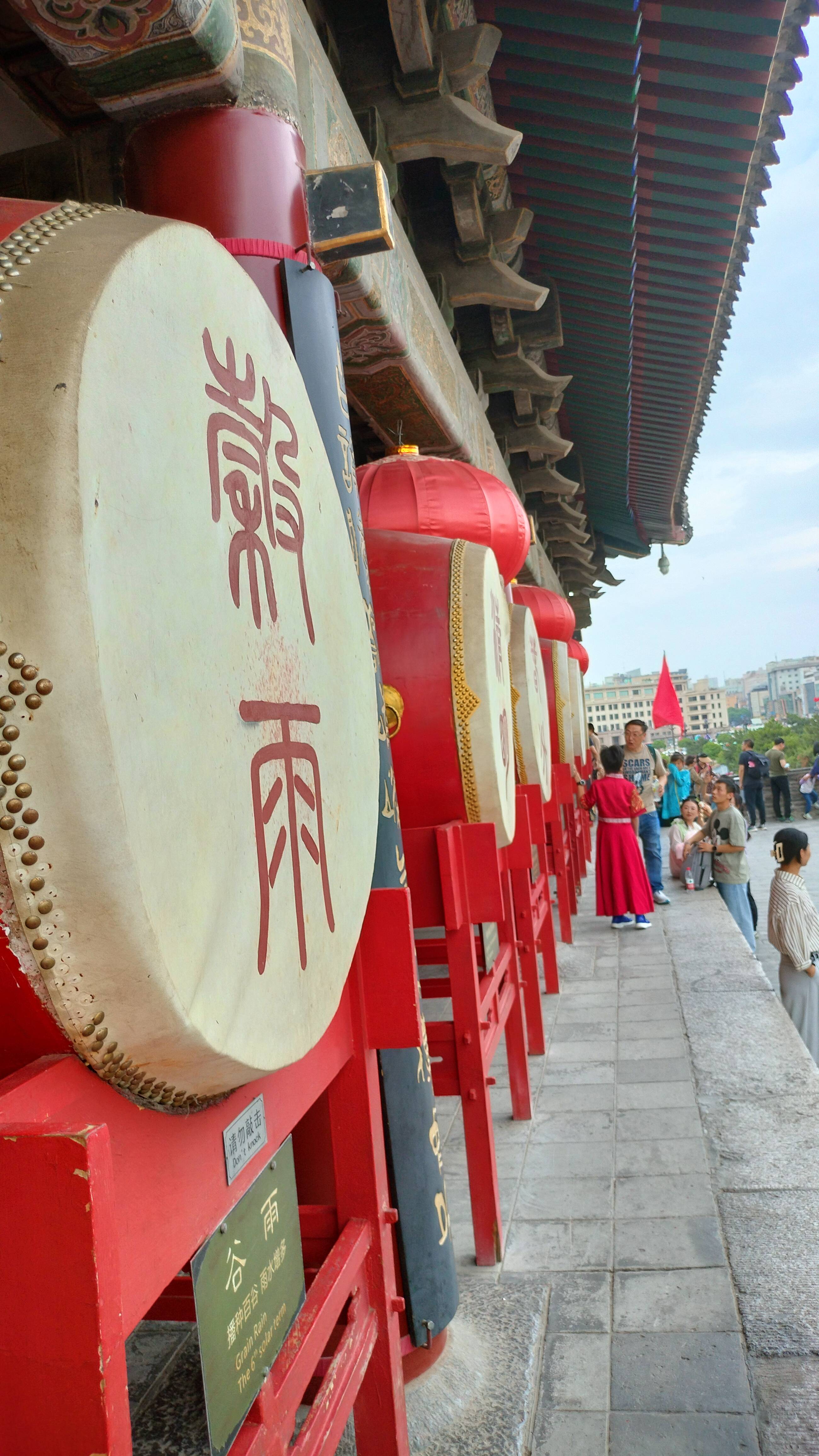 劳动节期间,西安的大唐不夜城、古城墙、芙蓉园等景区十分堵,回民街更是人来人往,很热闹。相比之下,钟楼和鼓楼的游客就显得不是那么拥挤,很多人反而在开元商场或鼓楼西北角的广场,眺望钟鼓楼,并拍照留影。其实,钟鼓楼从建筑和历史文化方面考量还是很不错的,都有600多年历史,华丽的建筑色彩、典雅的装饰构件、鲜明的民族文化特色,是西安的标志性建筑之一。