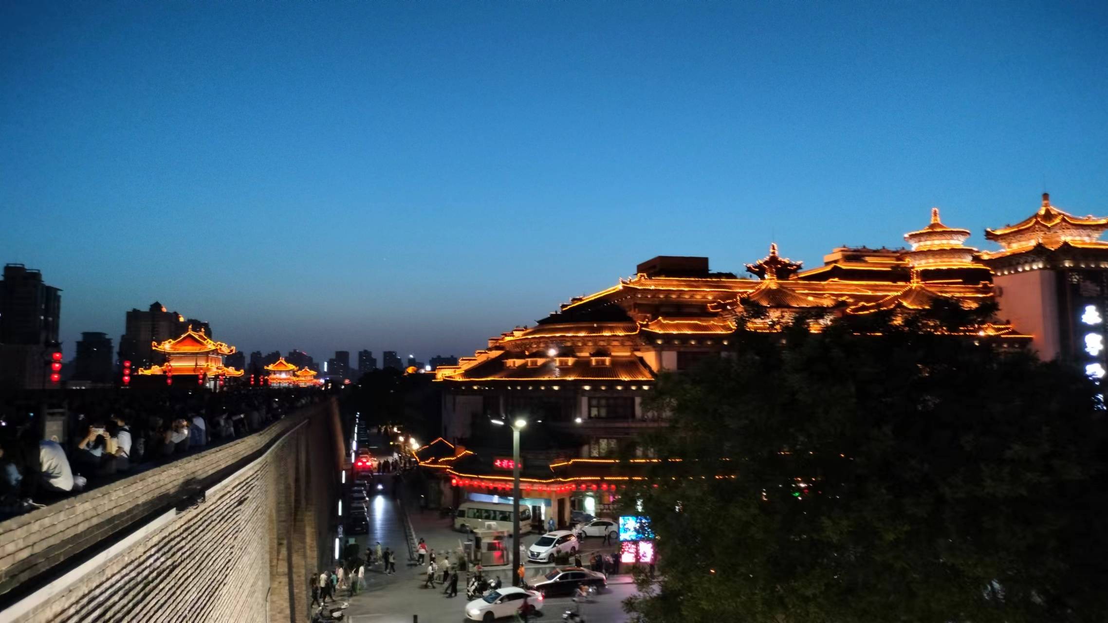 在西安古城永宁门登上城楼,向北眺望,可见钟楼和鼓楼。从永宁门到钟楼直线距离仅几百米,步行也只一刻钟左右。