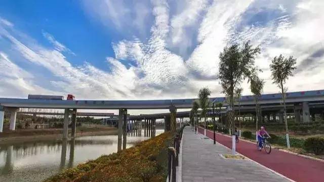 置身于花海之中,静观潺潺水流,可以感受人与自然的交融。除了岸边的鲜花和美景你还可以呼吸着新鲜空气,旁边水流潺潺,在十里花廊的健康步道散步、慢跑、骑行,感受这里的慢时光。
