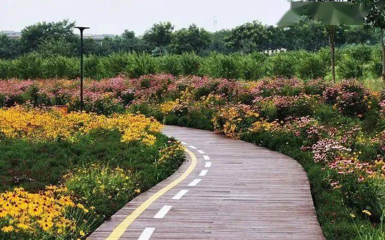 鹿泉区太平河十里花廊,东起秀水公园,西至石柏公园,设有4米宽彩色自行车道和3米宽步行路,道路两侧30米范围打造花海景观。设置健身广场、月季园、海棠园、牡丹园、林荫停车场、自行车停车台及亲水平台等景点。