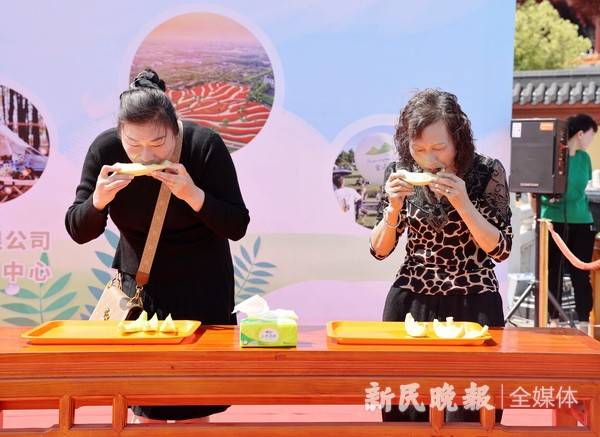 5月1日,金山区朱泾镇开展“缤纷五月 乐游朱泾”2023’朱泾镇品瓜大赛暨名优产品进景区活动,以金山四大名瓜之一的珠丰甜瓜为主角在东林寺景区开展“吃瓜大赛”,市民游客参与热情高涨,现场助威声与喝彩声此起彼伏,热闹非凡。此外,景区还设置了名优番茄、芈庆铺子、绿植花卉、花灯制作等特色展销和文艺展演活动。