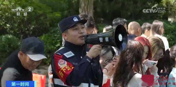 面对景区内暴增的游客,执勤的公安民警时不时拿出大喇叭“花式喊话”,提醒大家文明游览,幽默诙谐的提示语,引得游客连连点赞。