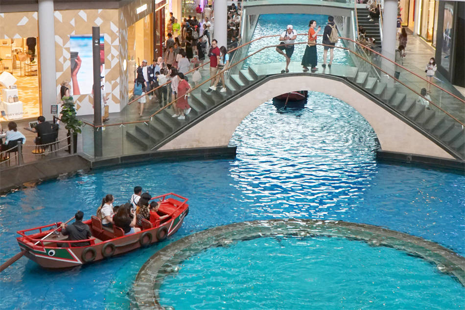 商场里人工河上刚朵拉小船往来其间,在澳门的威尼斯人那里也见过。