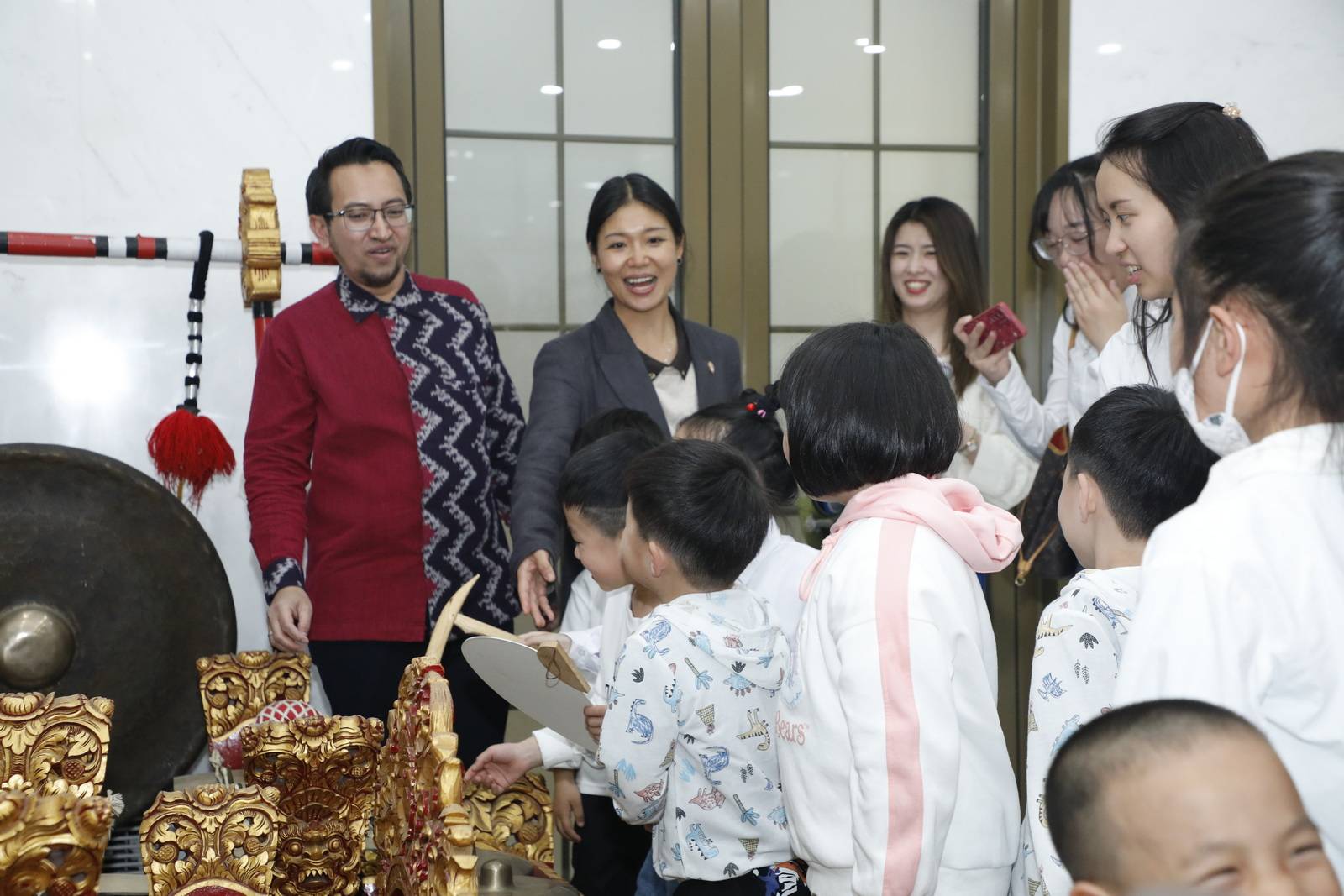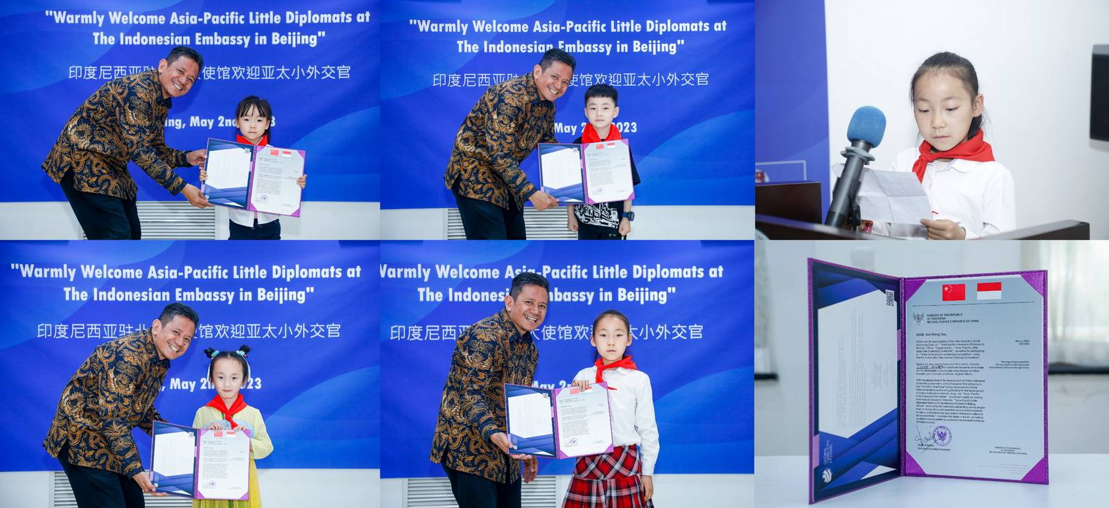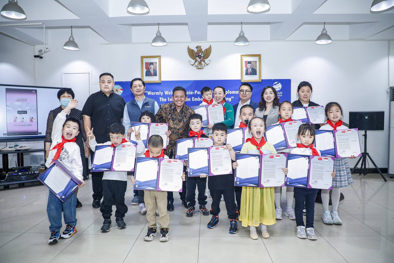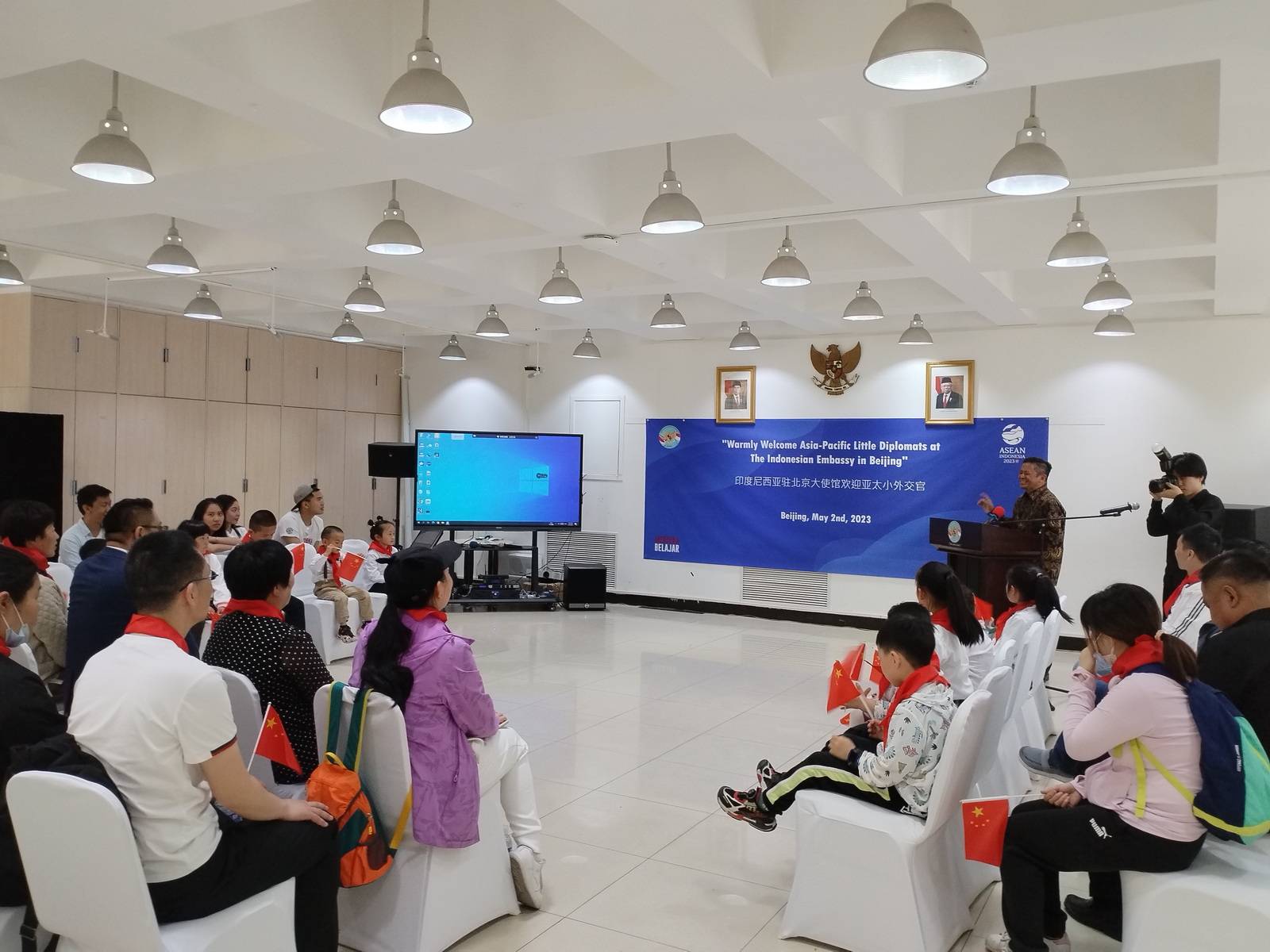 5月2日,河南一闹传媒联合“亚太小小外交官”组委会,举办了走进印尼驻华大使馆开展中印尼国际文化交流活动,来自北京、河南、山东的14位“小小外交官”受到了印尼大使、文化参赞李健(Yudil Chatim) 、移民参赞拉菲(Rafi Raden Fitri) 、一等秘书戴德明(Desta)及巴厘岛旅游局中国市场资深顾问叶露等热烈欢迎。