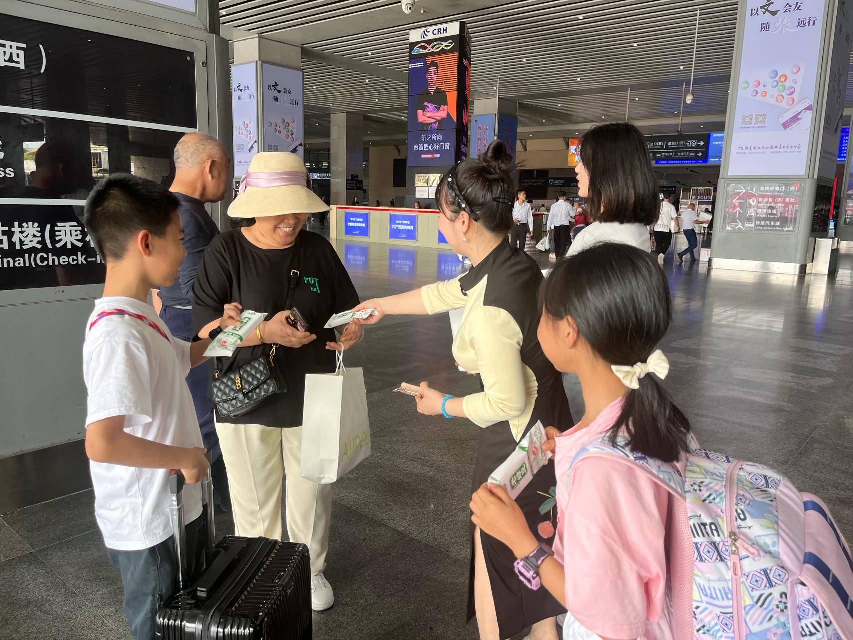 晚上9点半,志愿者群里还有人在活跃,“还有谁在高铁站我又到了”“今天接送了好多江西游客”“下雨了,大家开车注意安全”……5月3日将是活动的最后一天,组织者根据现场情况反馈,在群里建议大家最后一天“可两人一组一起喊客,不尴尬,给旅客安全感”。