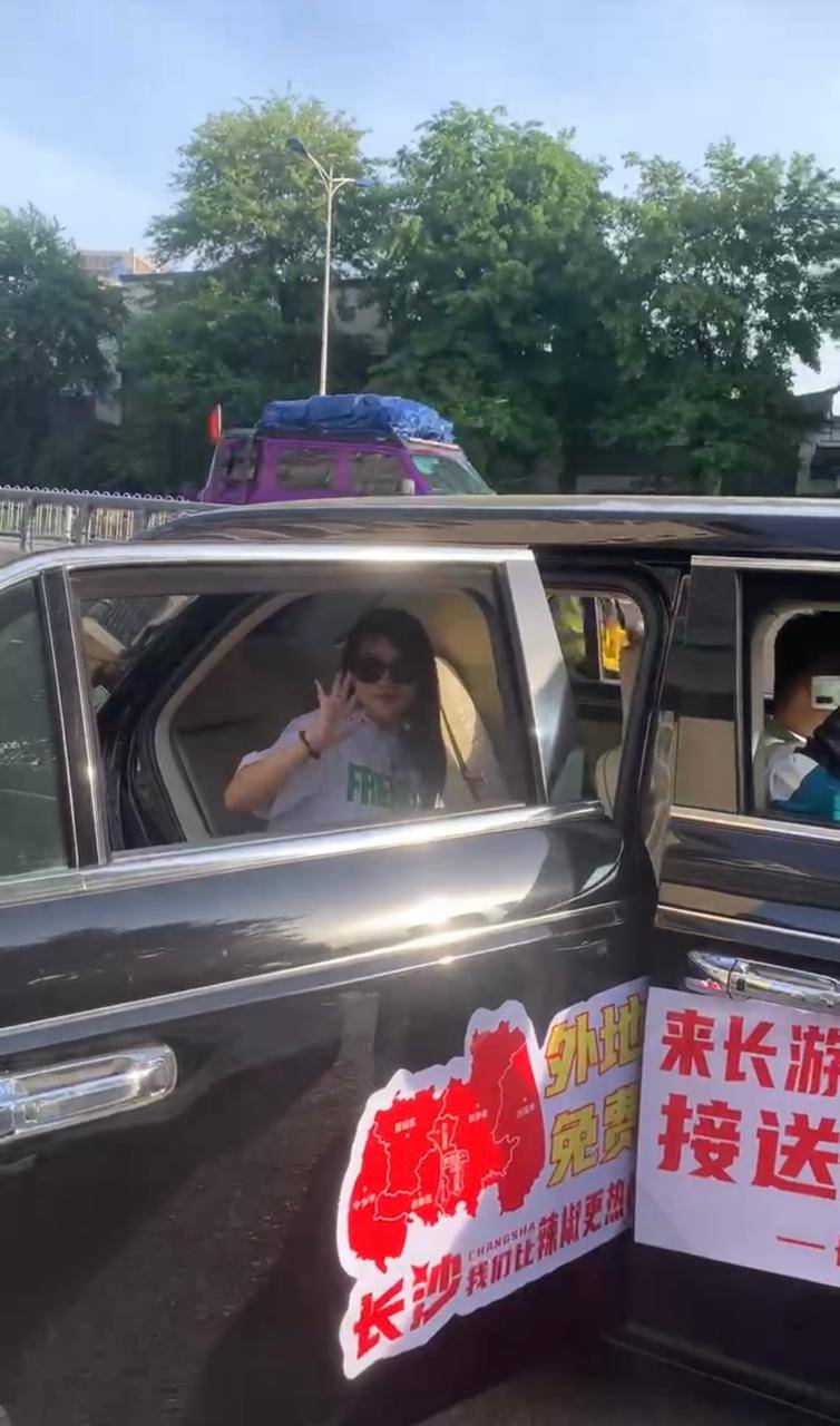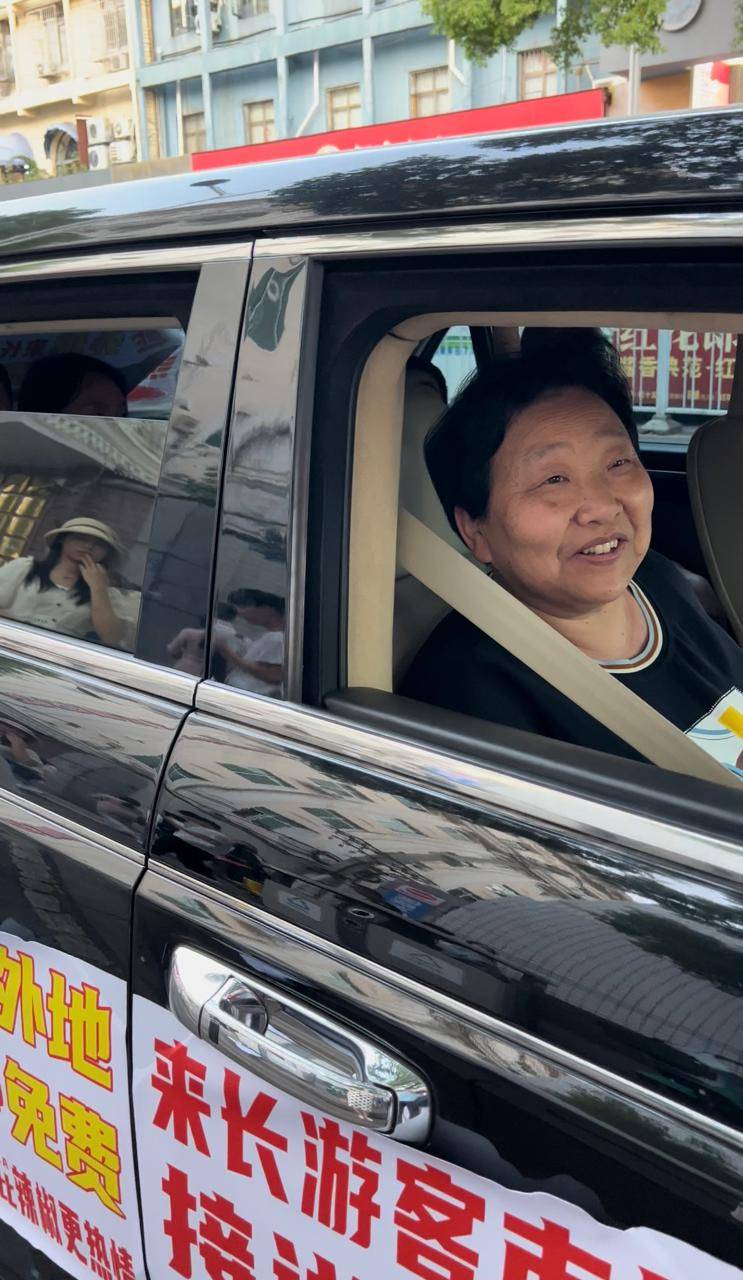 33岁的罗女士是4月30日看到活动后报名的,她是张家界人,如今定居长沙。“想尽一份力,在长沙生活幸福感很高,也想做点什么回馈这座城市。”第一天参与的时候,她向很多路人发出了邀请,“但尤其只有自己一辆车的时候,大家容易担心被骗,所以还被拒绝了挺多次。”有一次送完游客,对方还执意要她二维码扫码付款。“他(游客)说这么好的车跑这么远,一定要给我50块,我说不用不用,本来就是在做公益。”这也是罗女士第一次开车接送陌生人,途中与游客相处时,彼此之间传递出来的真诚让她感受特别。