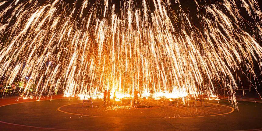 江西赣州:非遗绝技“打铁花”迎客来