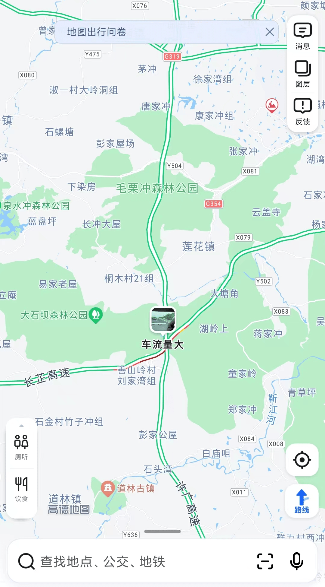 记者通过高德地图实时路况发现,长沙周边区域,S50长芷高速已经发生拥堵,预计通行时间为9分钟。
