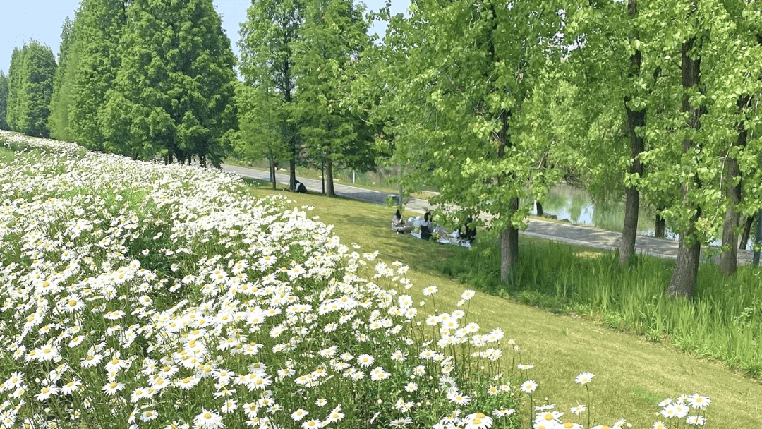 钱塘江边人少、景美,江边的斜坡草丛和绝美的鲜花交相辉映。杉树、小雏菊、虞美人、月见草.....每隔一段就是一片小花海,仿佛身处莫奈的油画之中。