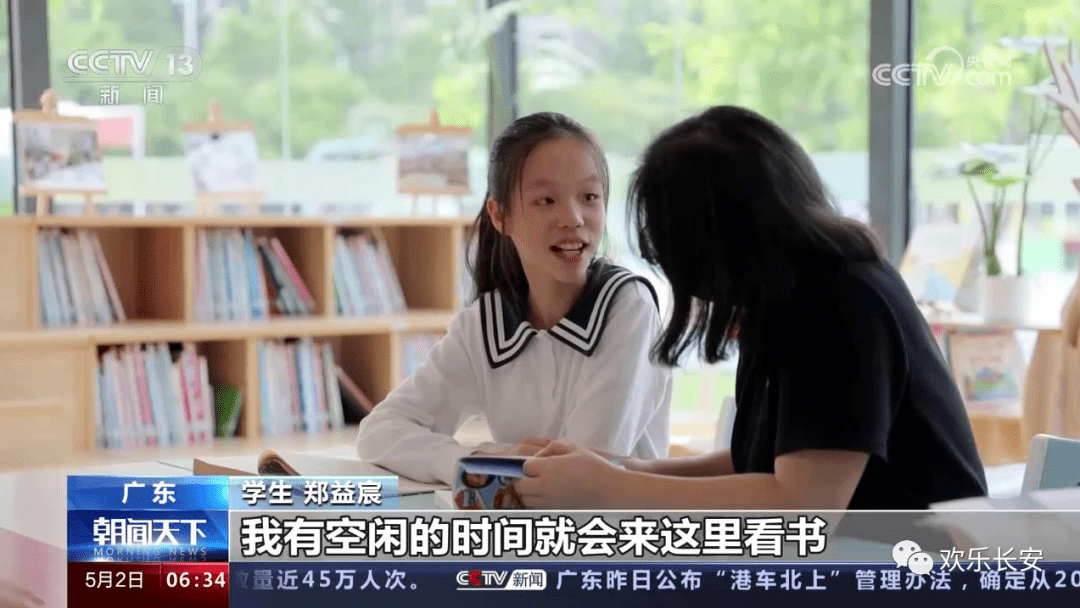 报道中提到,在长安镇的城市文化空间内,聚集了不少喜欢读书的市民,青少年占了相当大的比例,有家长带着孩子来感受书香的浓郁气息。