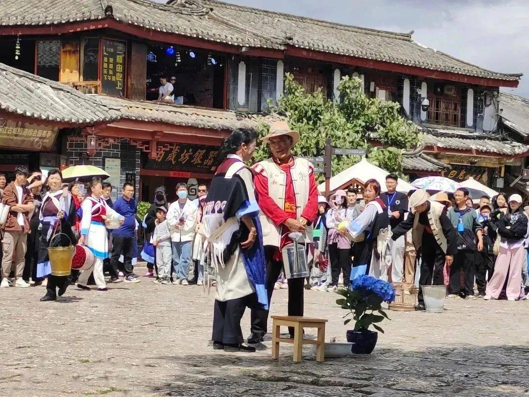5月2日,五一小长假第四天,丽江古城游人如织、热闹不减。下午三点,一场别具民族文化特色的“古城一天”四方街传统生活风貌情境展演拉开帷幕,给游客们送上了文化大餐。