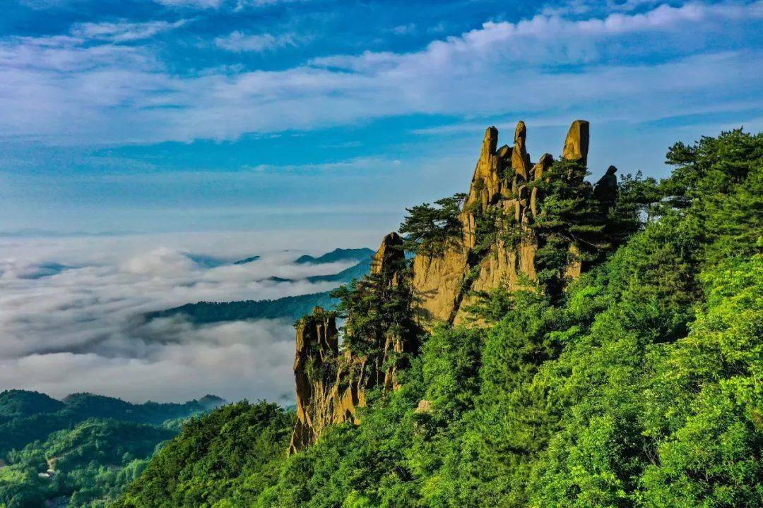 悬剑山距金寨县城20公里,山不太高,风景优美,当之无愧是县城的后花园,也是假期打卡的好地方。雨过天晴去悬剑山拍云海,满天云彩去悬剑山拍朝霞,都是极美的。那么,抓住假期的小尾巴,来一场云端的邂逅吧!