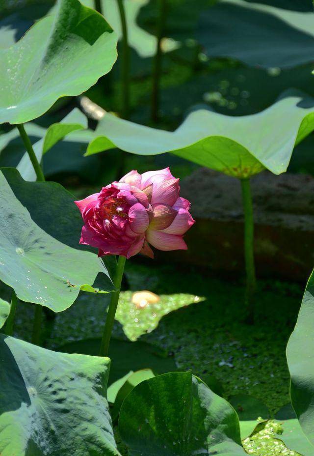 这一株并蒂莲位于圆明园古莲子条池隔壁,是在今年圆明园荷花节开幕后,第二次发现并蒂莲。