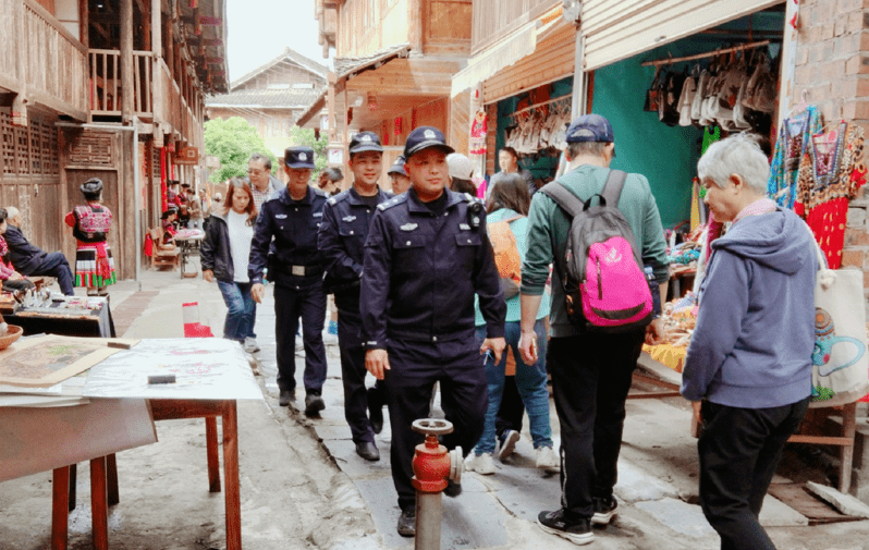 群众过节,警察站岗。“五一”假期,桂林龙胜处处都有流动的“警”色,守护景区、值守繁华商圈、开展安全检查……假期到来,龙胜民警的脚步非但没有停歇,反而加快了速度,让游客真切感受到“警”色与风光齐美。
