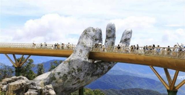而除了这个独特的手之外,事实上在越南内部也有一个造型比较奇特的以手为原型创作的建筑形象,它就是越南鼎鼎大名的佛手桥了。这座佛手桥位于越南的巴拿马山之上,是当地一个非常具有特色的独特建筑,这座桥梁据说当时的总投资就高达20亿元,桥长更是达到了150米,不从它的实用性仅仅从建筑外观上来看,确实脑洞大开,远远望上去,就如同这只巨手托举着巨大的桥梁一般,令人震撼。大家对于这两个独具艺术特色的手形象有什么样的看法呢?