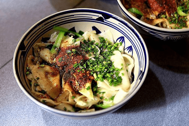 户县软面因面条像裤袋而被评为关中八大怪,而这种在面条煮好后,通常还会配以猪肉、土豆、蒜苗、鸡蛋、木耳、小青菜等菜码做成的臊子及其他调味料一同食用,是去到陕西地区必吃的一道传统美食。