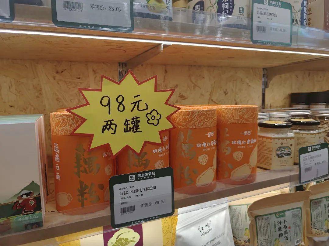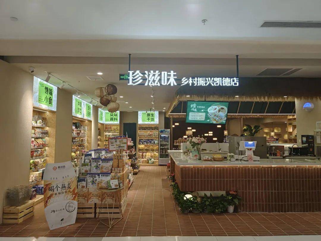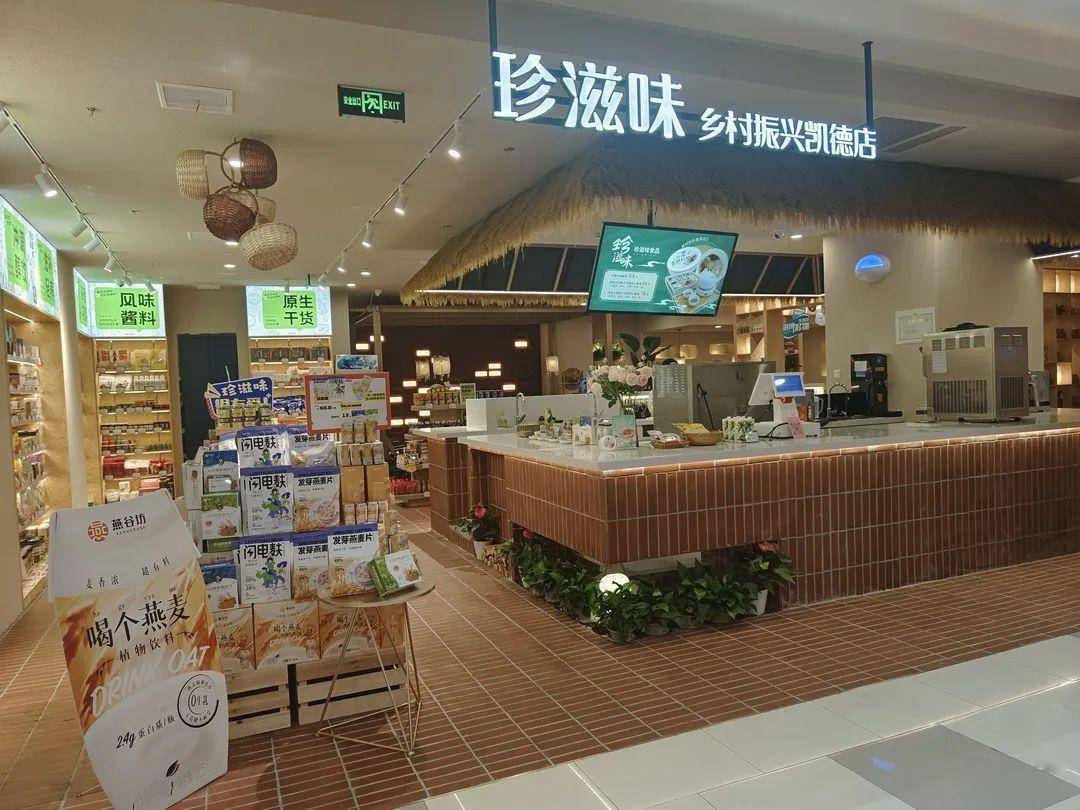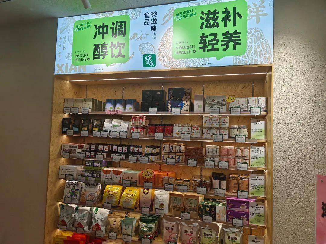 珍滋味乡村振兴凯德店内的产品丰富,涵盖了下午茶歇、馋嘴零食、提神咖啡、清补冲调、原生干货、高山好茶、文创非遗等品类。