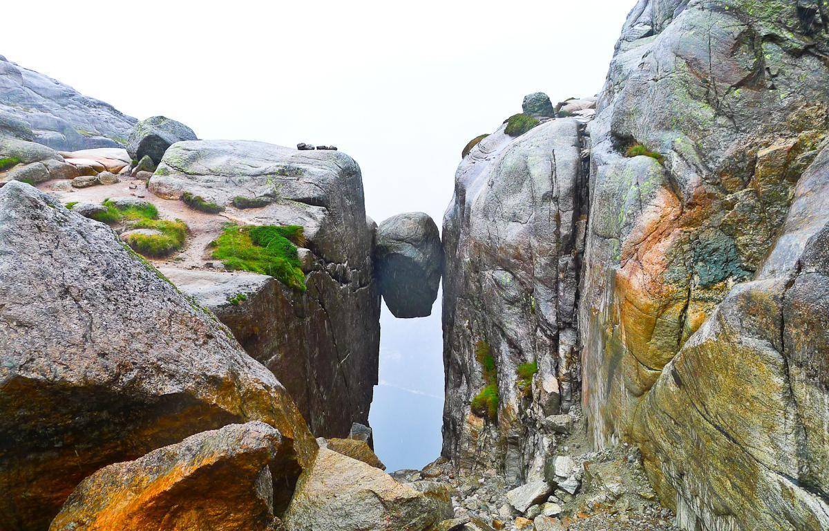 谢拉格顶部有着一块挪威奇迹石,但该石块并不属于山顶,而是位于1千米高的峡谷中。两侧的悬崖垂直距离并不算太大,游客们可以由悬崖两侧攀爬而下。这块巨石的整体构造非常奇特,犹如一分为二的巨岩,中间还有着一条巨大的裂缝,游客们能够站在上面拍照需要极大的勇气。