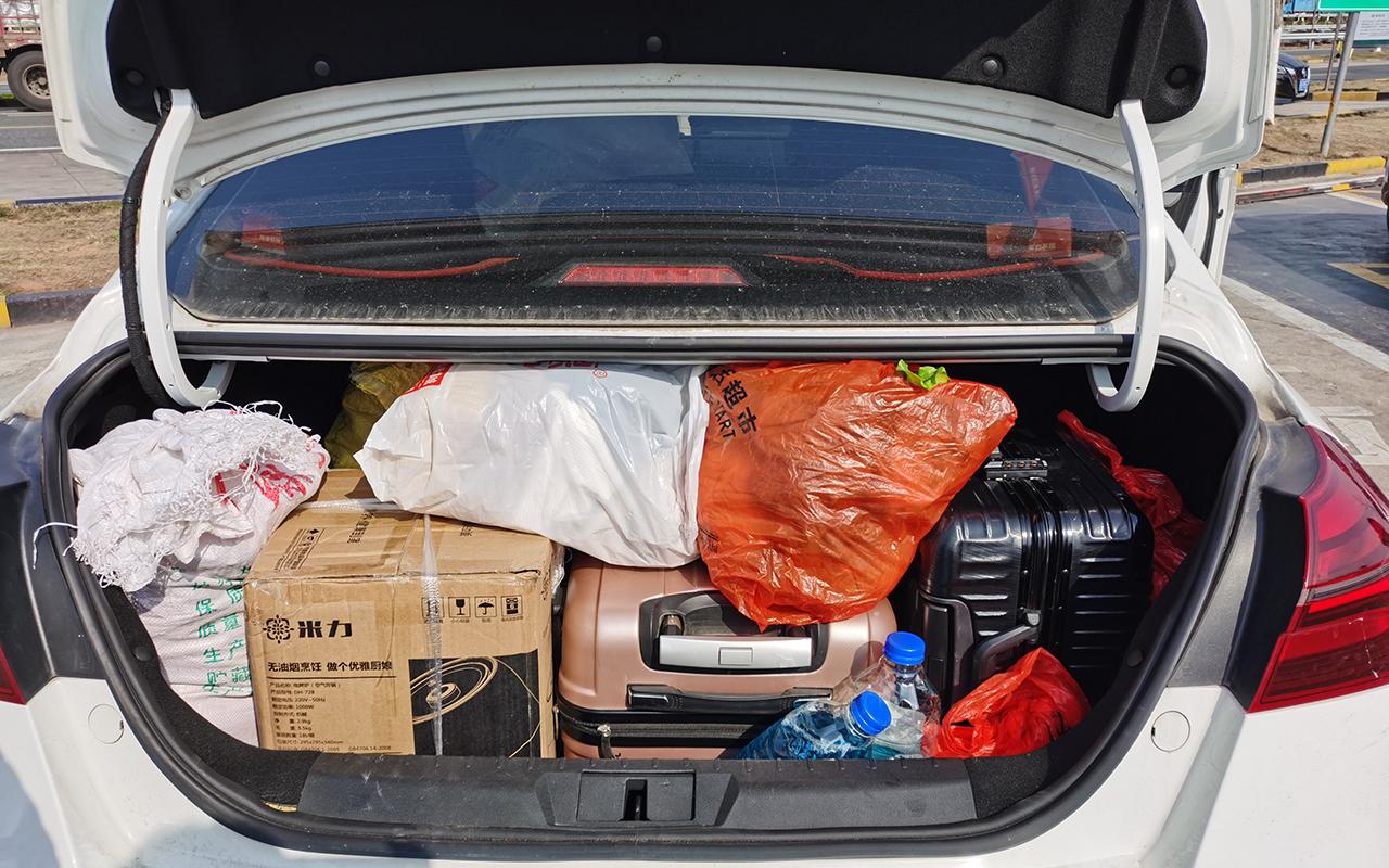 网友一:车尾箱已经没办法打开,只能从后座往车尾箱塞东西。