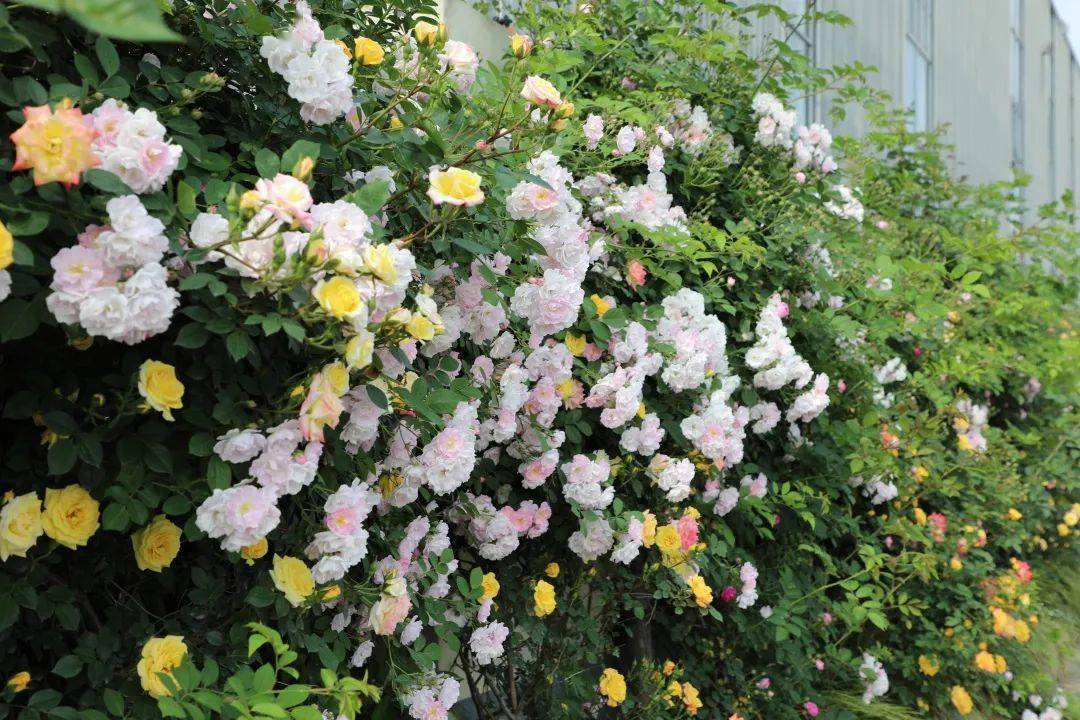 大游行月季、藤本蔷薇、藤彩虹,各色月季铺满了两侧墙面,非常惊艳。以浪漫的花墙为景,人在景中,人即为景,赶紧来拍属于你的大片。