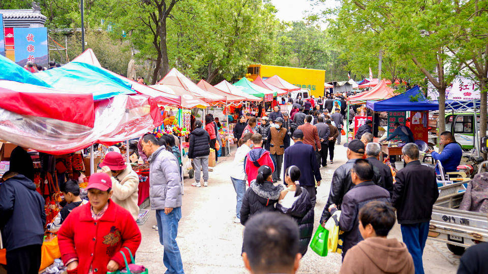 吴村镇九仙山风景区与石门山风景区紧邻,一周前,以“上祀游春、祓禊祈福”为主题的吴村镇“三月三”民俗文化庙会在九仙山脚下开幕,涵盖了乡村旅游、戏剧展演、美食汇等10余项游览体验活动,许多体验项目和摊位保留到“五一”期间,满足游客多样化的出游需求。