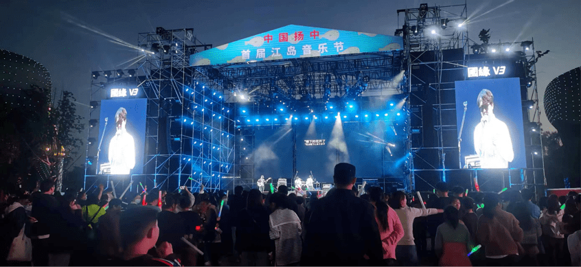 扬中市利用园博园高品质公共绿地资源,邀请水木年华、赵照、卢俊杰等全国15支知名乐队、歌手,在4月29日-5月1日举办中国扬中首届江岛音乐节,吸引海量游客一起“嗨”。