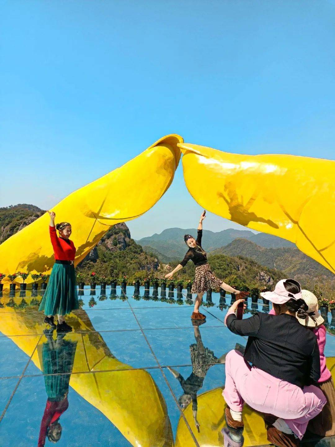 ▲游客打卡佛手天空之镜