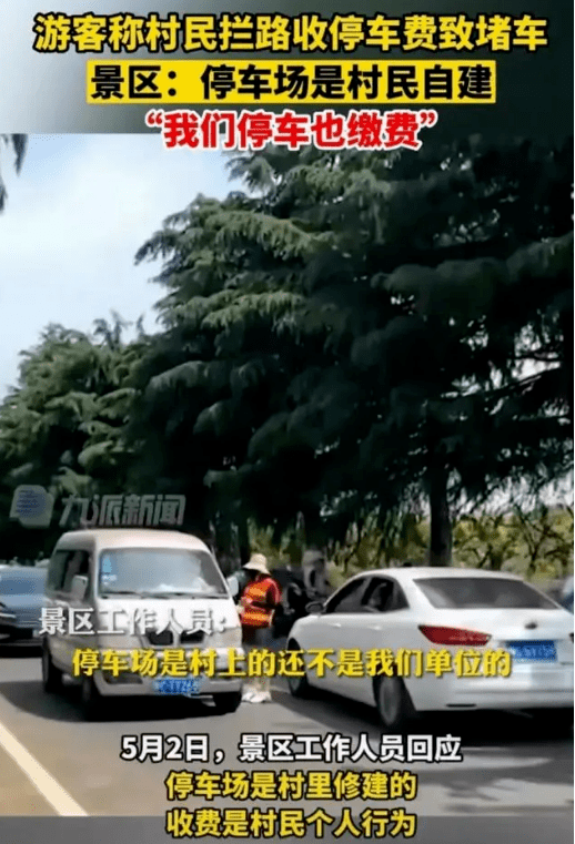 有村民在道路上拦下行驶在路上的车辆,并强制收取“停车费”,致使该路段车辆堵塞。对此,景区方面发布了回应称:停车场是村民自建,停车需缴费,我们无权干涉。