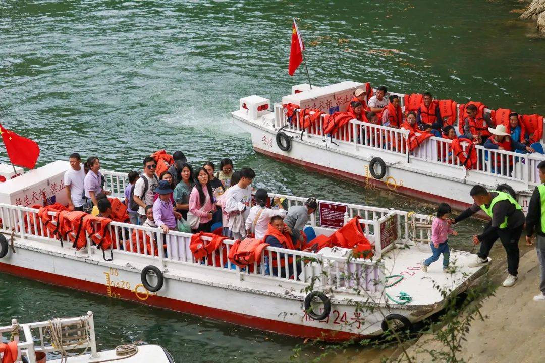五一假期开启以后,位于安顺市紫云自治县的格凸河风景名胜区迎来旅游高峰期游客络绎不绝,现场井然有序。