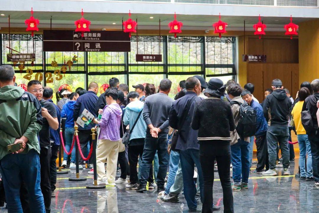 5月3日一大早,记者来到格凸河风景名胜区看到,该景区售票大厅排起了长长的队伍,停车场内停满了来自全国各地车牌号的车辆,观光车穿梭在景区主干道上接送着游客,大河苗寨码头、大穿洞码头、望天码头等景点游客络绎不绝。