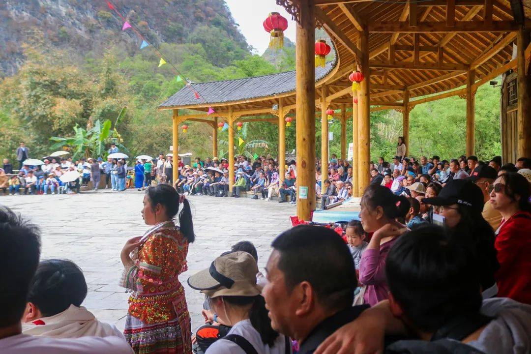 在这个五一假期,格凸河风景名胜区有浪漫的紫藤长廊像是通往幸福之路,在花海里遨游、怡然自得,吸引了大批游客在此拍照打卡纪念,进入景区就已经感受到了五一的欢乐氛围;在蜘蛛人徒手攀岩表演平台,浩浩荡荡的队伍排成长龙,神秘的苗家蜘蛛人徒手攀岩表演绝技,让现场游客纷纷举起手机,都在惊叹着;在女神足印、百龙天梯、通天栈道、穿上洞当景点,新游线的解锁增加了游客新体验,拍照、打卡、探秘、追光,现场游客玩得不亦乐乎;神秘的亚鲁王文化演艺在大河苗寨精彩呈现,一声声唱诵、上刀山、下火海,引得众多游客驻足观赏,热情好客的歌曲、敬酒舞、刷把舞、书法艺术……吸引许多游客在此落座观看,热情洋溢的演出,游客禁不住鼓掌声、欢笑声、呐喊声齐上阵。