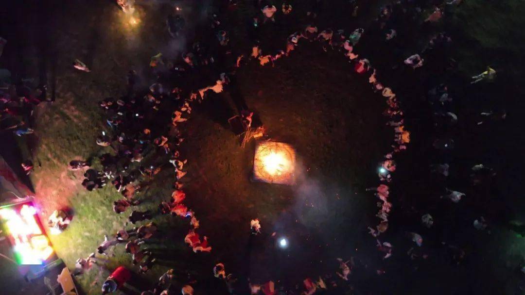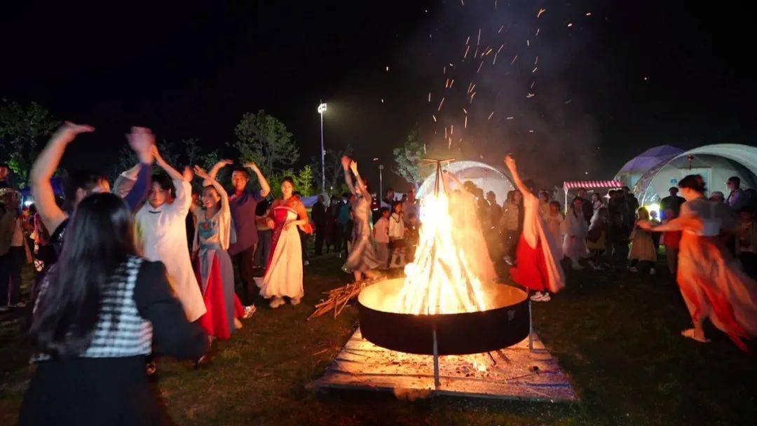 在草坪音乐会上,一首首激情的音乐响起,来自五湖四海的游客手牵手围着篝火,跟随着音乐的节拍载歌载舞,现场气氛欢快热烈。