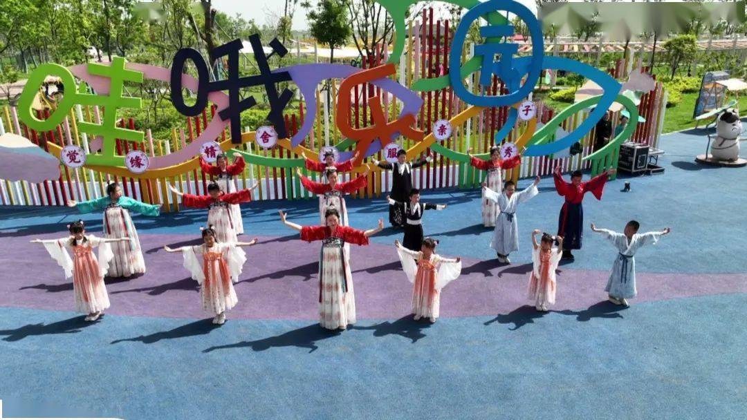 在“哇哦儿童”乐园,“儿童汉服游园会”也在热闹举行,国学老师带着学生们纷纷穿上汉服,表演传统礼仪、乐器演奏,在扇子上作画,开启一场国风之旅。