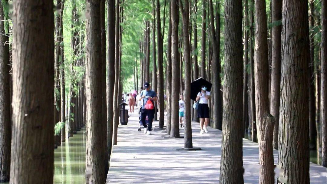 走进景区,湿地公园万株水杉秀美挺拔、倒影婆娑,乘坐画舫游船,穿行幽深静谧的水上森林,如诗如画的美景让人流连忘返。