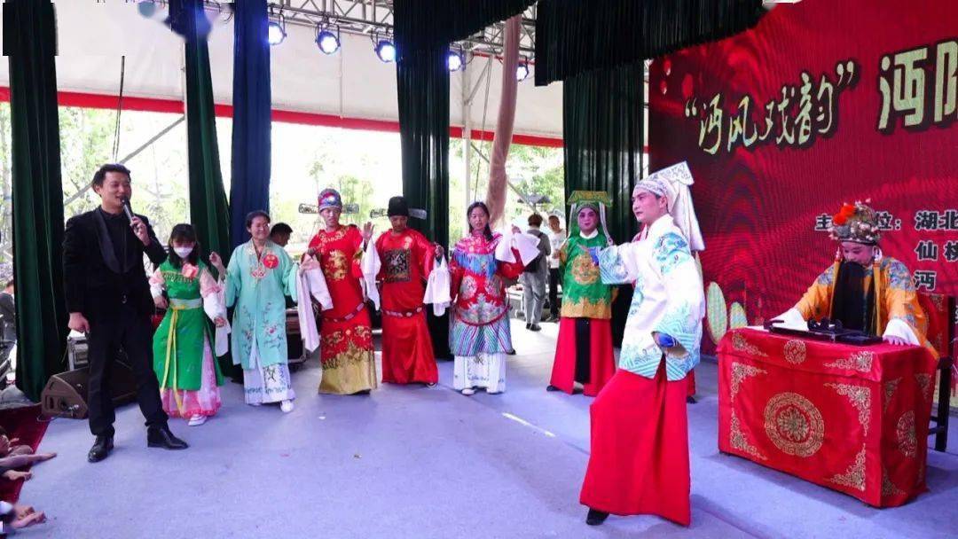 在进士殿广场,伴随着铿锵的锣鼓、传统的唱腔,《赶子放养》《打金枝》等沔阳花鼓戏经典选段轮番开唱,游客们沉浸其中细细品味。