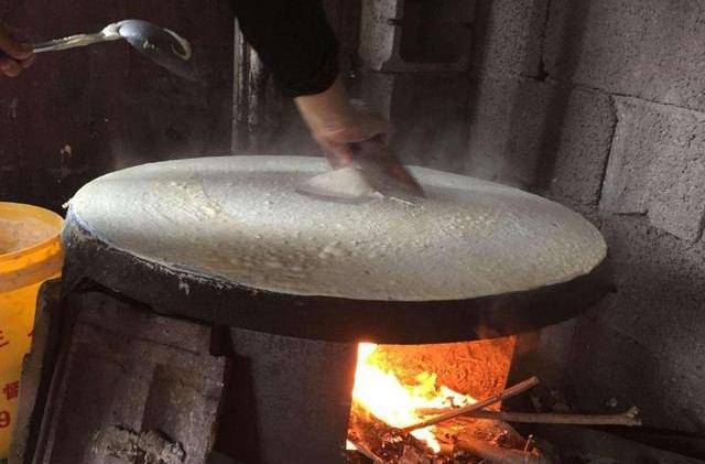 这种煎饼我们小时候经常吃,都是做主食吃。那时候这种煎饼基本上每隔三五天就会做一次,每次做煎饼的时候,妈妈都是天不亮就担着半桶洗好的小麦,去村里“电磨”上“磨糊子”。也就是把小麦加工成“糊状”,回来烙煎饼。这样圆圆的煎饼很脆很香,卷上辣椒或是咸菜能吃一两个。
