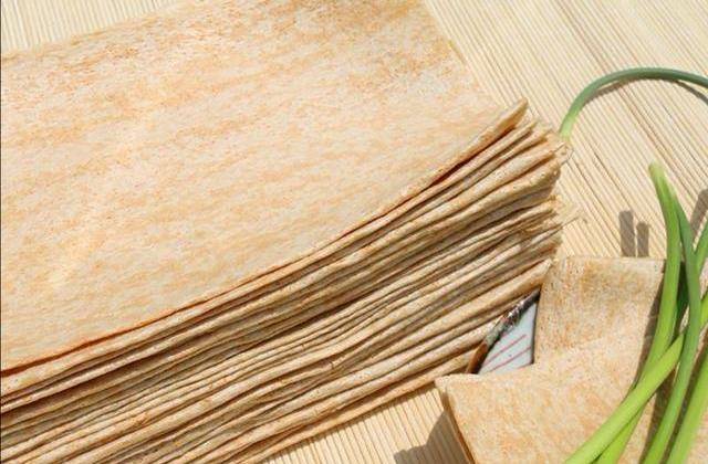 小麦煎饼,里面用的小麦是没有经过脱皮直接磨成面粉,所以看起来比较粗,颜色也比较深。这种煎饼吃起来就是很原始的“小麦味”,这才是真正的粗粮。