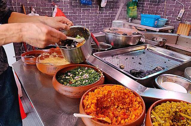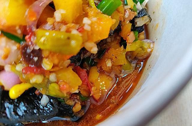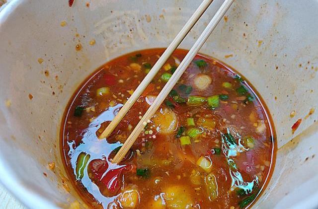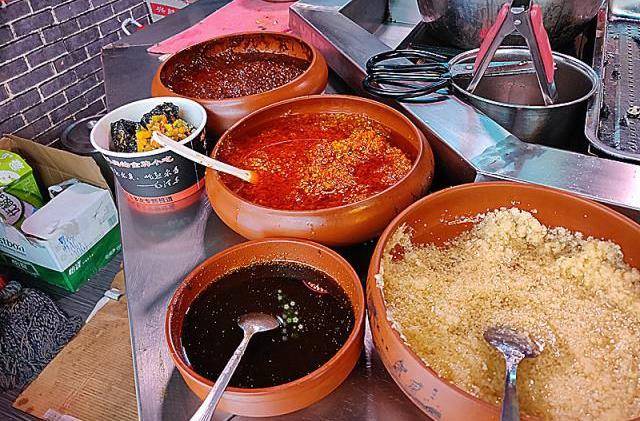 这个是调味的酱油、辣椒油等各种酱料,难怪臭豆腐好吃,这些酱料闻起来都很香。不能吃太辣的可以少放一点辣椒油。