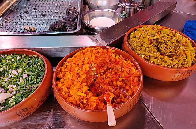 这个是香辣味的萝卜丁,很开胃。右手边的是酸豆角,也是酸辣开胃的。