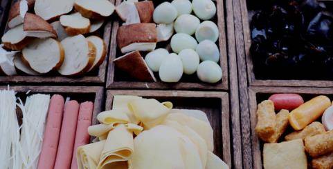 所需食材:鹌鹑蛋十个,鸡胸肉500克,豆皮20克,豆卷40克,鸡肝100克,火锅小香肠25克,鱼豆腐25克,土豆一个,香肠三根,金针菇适量,葱适量,豆瓣酱适量,生姜两块,料酒适量,八角两个,香叶四片,鸡一只。