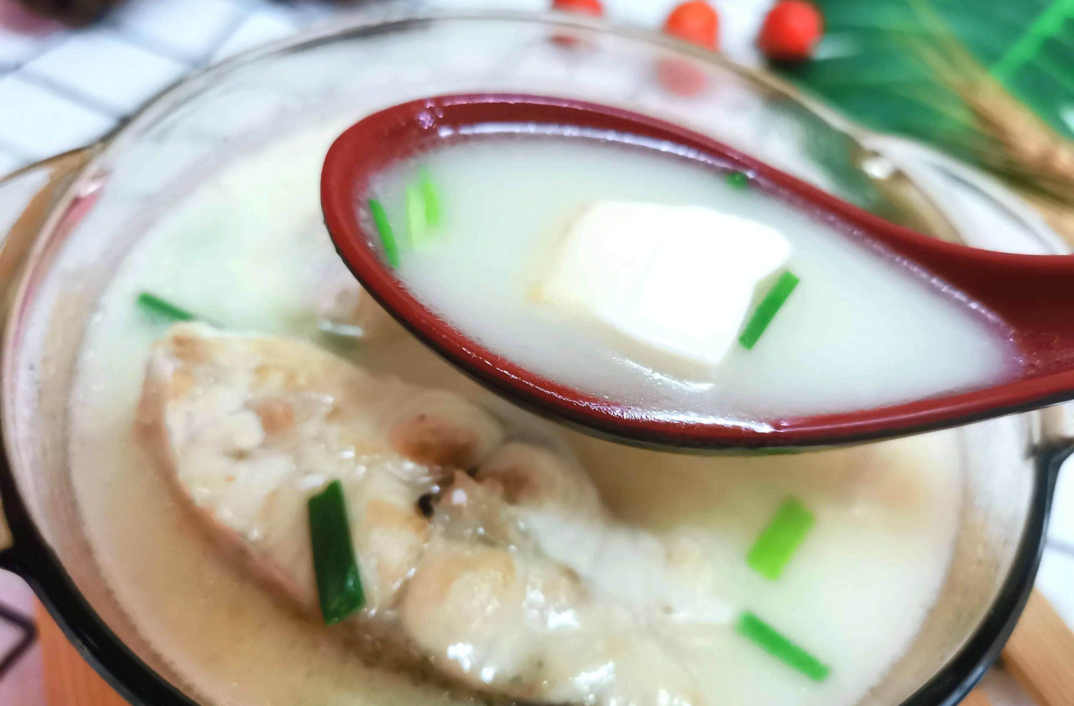 3.最后再把切小块的豆腐放进去,烧开之后加少许的葱花,再加一点点盐调味一下,鱼本身就很鲜美,所以不需要再加鸡精。