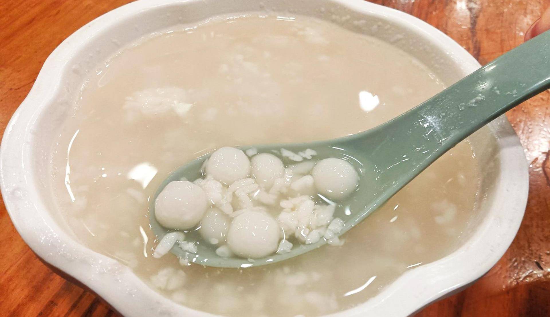 江西人很喜欢酿米酒,而且把米酒运用到各种菜肴和小吃当中,这个酒糟汤圆就是其中的一种美食。它以以糯米粉制成小圆球形,入沸水煮熟,以酒糟、白糖拌和而成。