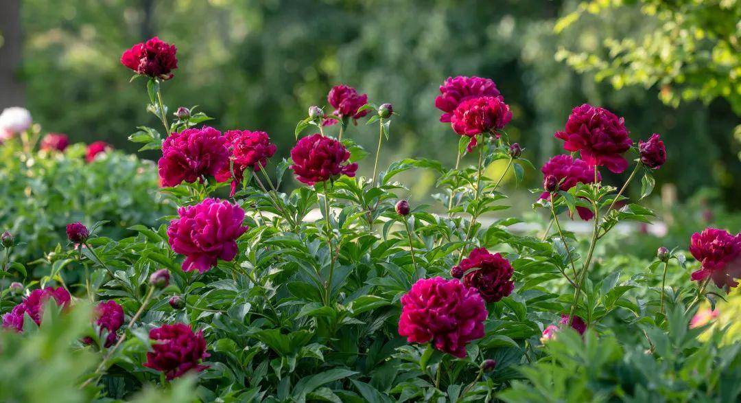 曲柳与北欧松树下,拱形花柱爬满了花开正艳的粉紫蔷薇,星星点点的缀在团簇的绿从间,于公园静谧中悄然传递着暮春悠扬的旋律。