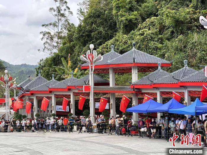 图为游客聚集在友谊关城楼前拍照“打卡”。 李丽萍 摄