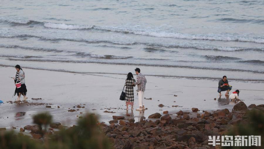 5月1日下午,青岛石老人海水浴场附近,很多游客在海边拍照,还有家长带着孩子赶海。当天气温适宜,一些游客干脆脱下鞋子,直接到海里漫步戏水,近距离与大海亲密接触。
