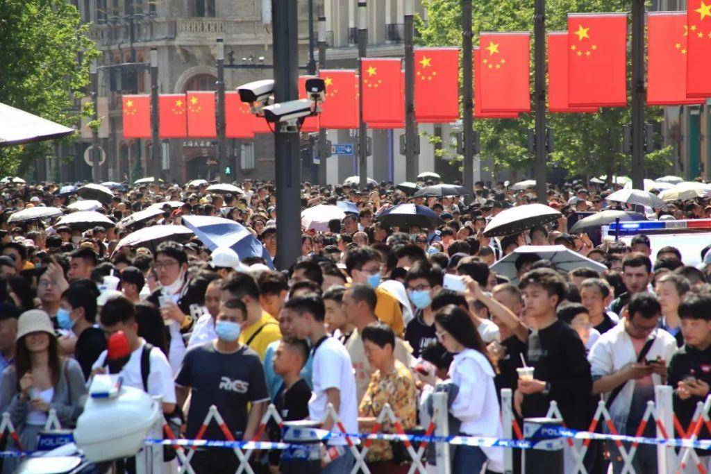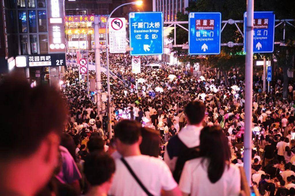 5月1日,重庆,通往洪崖洞景区的游客人山人海。