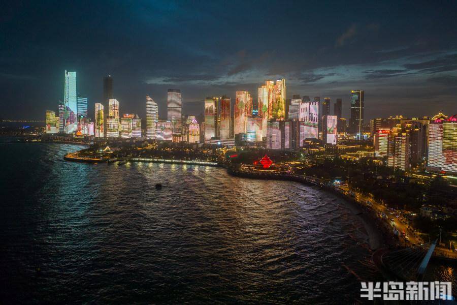 5月2日晚,浮山湾畔上演了绚丽的灯光秀,为五一假期里的青岛营造出氛围独特的夜景。今年五一假期期间,浮山湾灯光秀自4月29日至5月3日每晚播出四场,每场约15分钟。市民和游客可以在奥帆中心、五四广场以及第三海水浴场等地方观看,一览岛城最壮观的海滨夜色。
