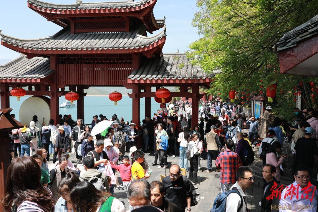 今年郴州市承办省第二届旅发大会,资兴市把服务好“五一游”,作为全市各级各部门的一场“大考”,精心准备,精细服务。为丰富游客的体验感,东江湖旅游区(环湖)在游客中心广场,设立了一块气球墙,游客通过戳气球,便有机会获得文创笔、团扇、油纸伞、东江湖水宝宝、东江花月夜船票等礼品,变脸、竹竿舞等非遗表演,加上古典美人跳起优雅的鼓上舞,既起到了分流作用,又消除了游客排队的疲劳。同时,在东江湖旅游区雾漫小东江东江1号至3号浮桥,每天上演的白娘子抚琴清唱、瑶女对唱、轻舟扬笛等精彩表演,让游客一饱眼福,拍照打卡不断。鬼斧神工的兜率溶洞内,更是别有一番洞天,每天上午下午共2场,上演改编神剧《“七妖”戏“唐僧”》,游客们在感叹大自然神奇的同时,仿佛来到了人间仙境,身临其境地感受了一把大话西游的神奇。多措并举之下,东江湖旅游区(环湖)单日接待游客最高达到9.0615万人次。