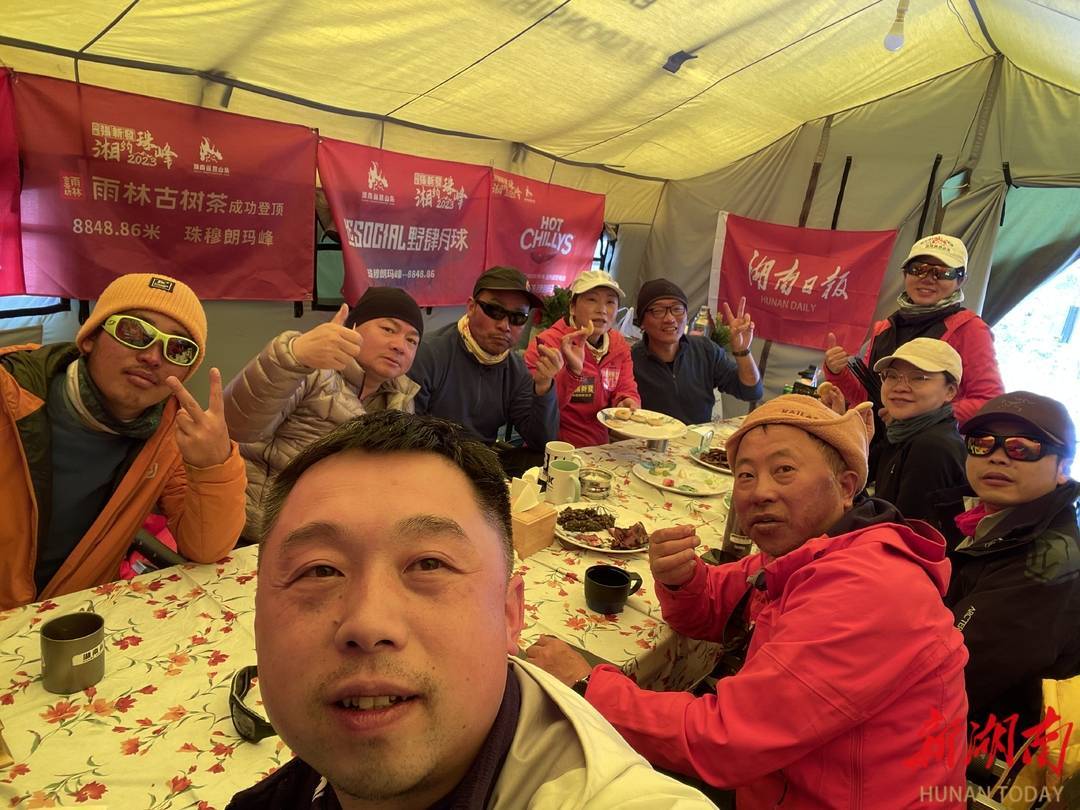 作为中国第一支省级登山队,湖南省登山队于4月9日从长沙出发,4月19日进入大本营并进行了多次拉练。就在记者抵达前一天,由8名攀登者组成的湖南省登山队完成了冲顶之前的最后一次拉练——队伍从4月28日凌晨出发,前往C1、C2营地进行登顶前最关键的一次拉练,以适应6000米以上海拔的徒步和攀登。