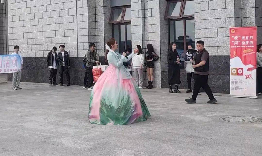 为了让这些八方来客进一步感受延边魅力,5月2日下午,延边歌舞团的演员们就在延吉西站上演了精彩的歌舞演出。 随着美妙的音乐响起,演员们翩翩起舞,富有朝鲜族民族特色的长鼓舞、象帽舞以及独唱等歌舞节目,让游客们驻足观赏。